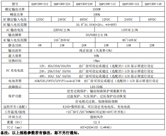 QSP1500W純正弦波充電逆變一體機: