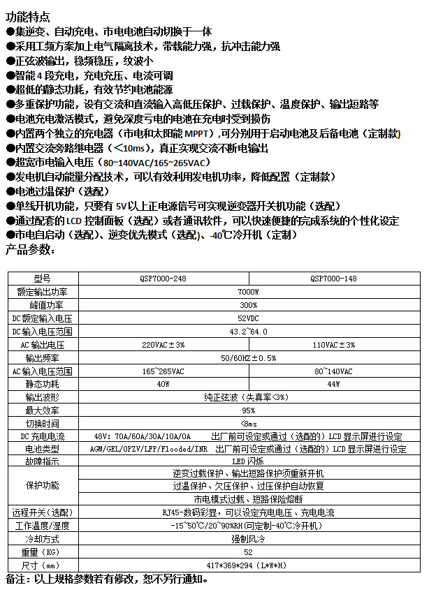 7000W純正弦波充電逆變一體機(jī)(QSP系列)