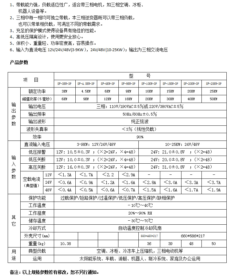 三相高頻正弦波逆變器規(guī)格參數(shù)(3-25KW)